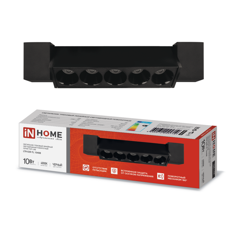 Светильник светодиодный трековый TOP-LINE LTR-02R-TL 10Вт 4000К IP40 1000лм 210мм 24град. линейный поворотн. черн. IN HOME 4690612045719