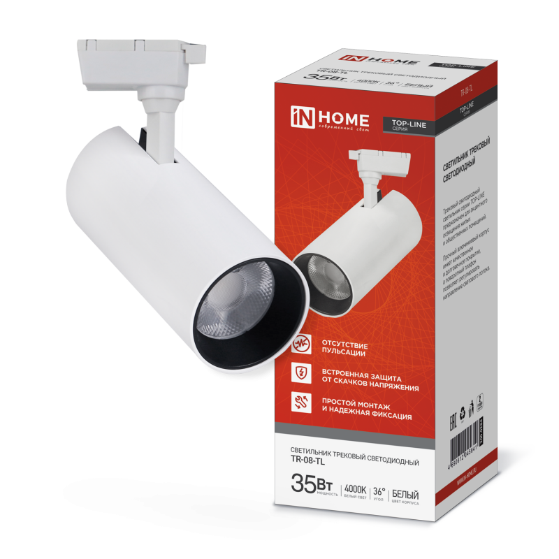 Светильник светодиодный трековый TOP-LINE TR-08-TL 35Вт 4000К IP40 3500лм 36град. бел. IN HOME 4690612045641