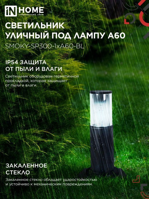 Светильник ТБУ SMOKY-SP300-1хA60-BL IP54 300мм уличный напольн. алюм. черн. IN HOME 4690612059228