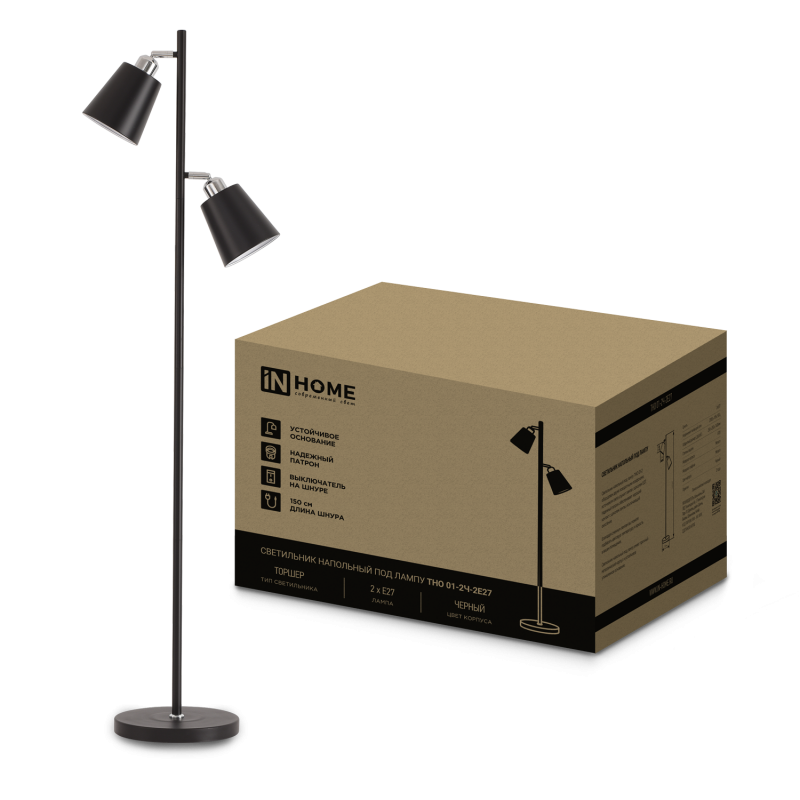 Светильник ТНО 01-2Ч 2х60Вт E27 230В напольн. под лампу на основании черн. IN HOME 4690612049625