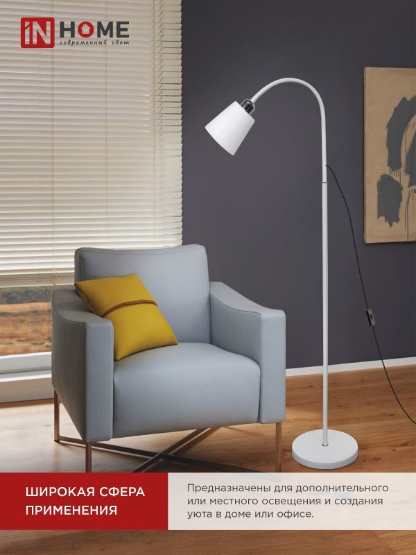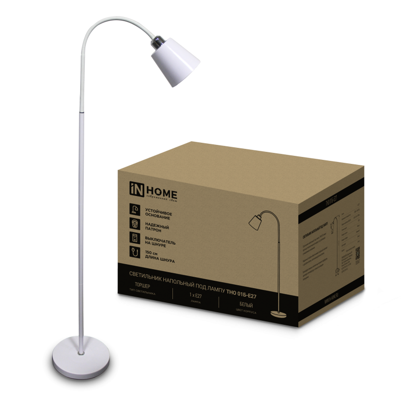 Светильник ТНО 01Б 60Вт E27 230В торшер напольн. под лампу на основании бел. IN HOME 4690612042664