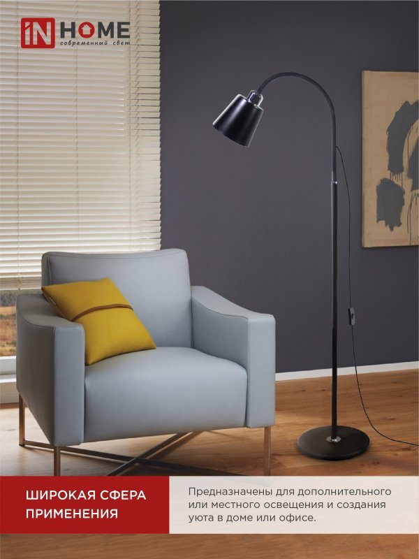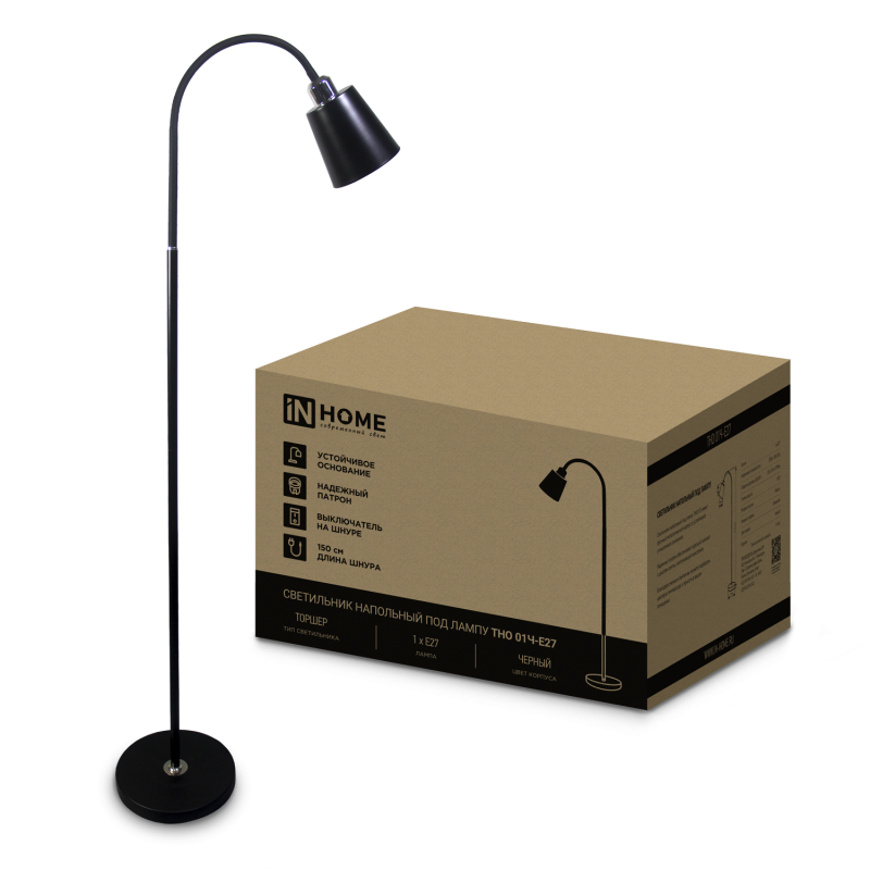Светильник ТНО 01Ч 60Вт E27 230В торшер напольн. под лампу на основании черн. IN HOME 4690612042657