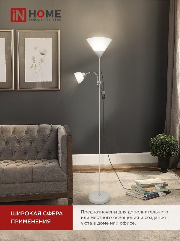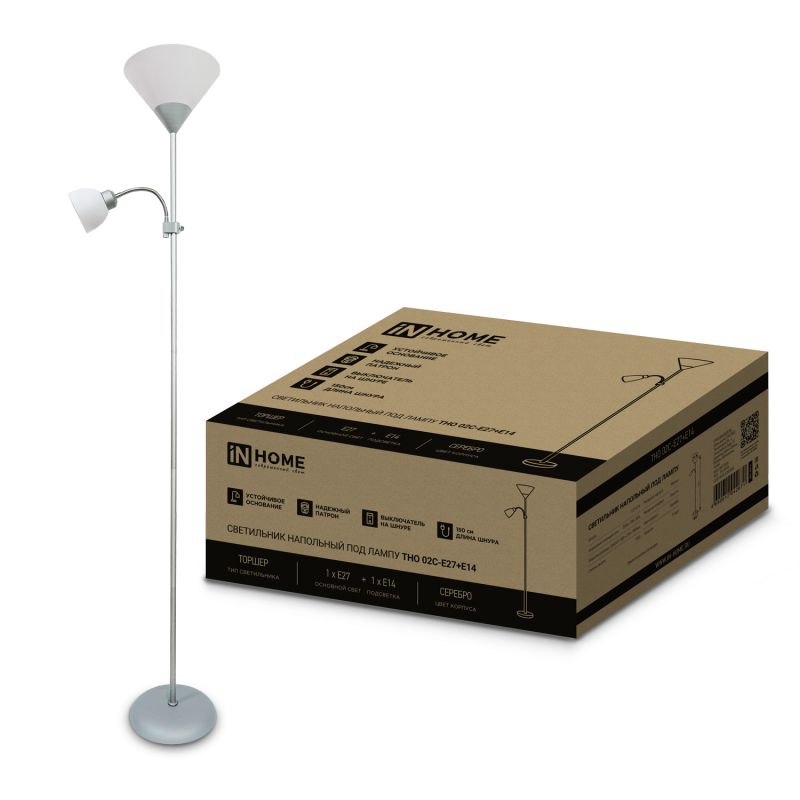 Светильник ТНО 02С 60Вт E27/E14 230В торшер напольн. под лампу на основании серебр. IN HOME 4690612042671