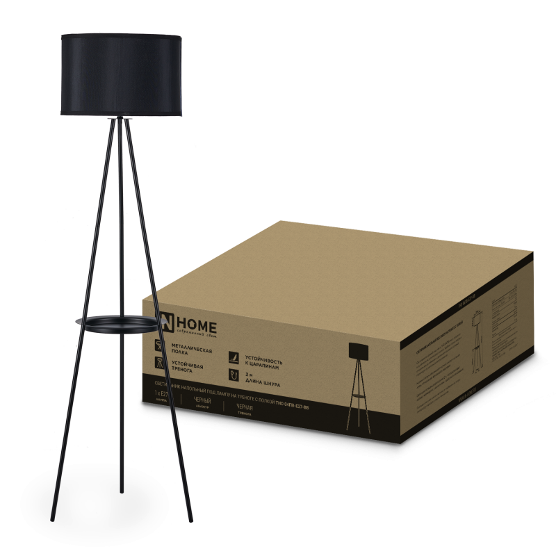 Светильник ТНО 04ПВ-Е27-BB 230В напольн. под лампу полка черн. абажур/черн. тренога IN HOME 4690612060248