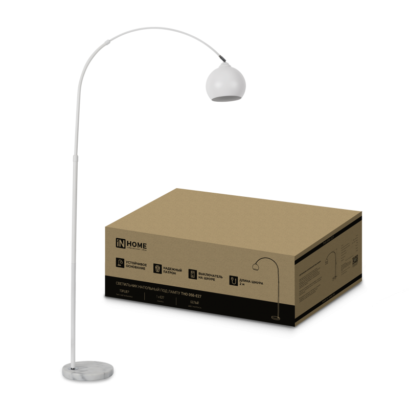 Светильник ТНО 05Б 60Вт E27 230В торшер напольн. под лампу на основании бел. IN HOME 4690612049205