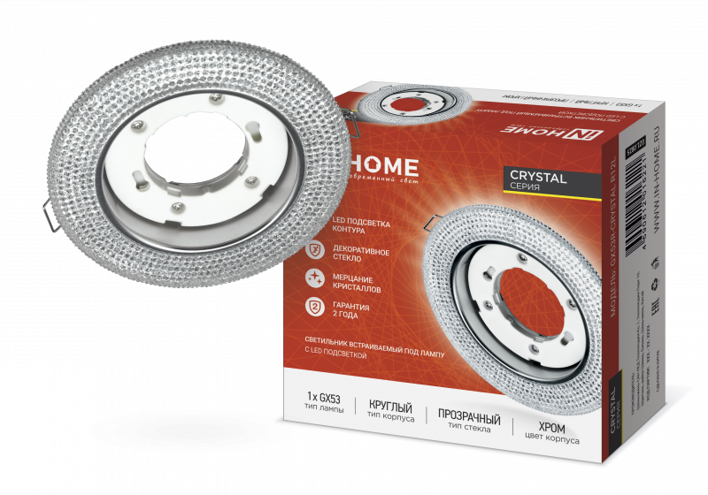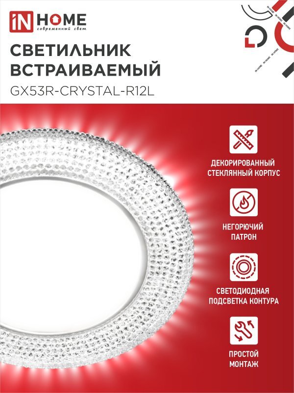 Светильник точечный GX53R-crystal R12L GX53 IP20 230В встраив. с подсветкой прозр./хром. IN HOME 4690612016221