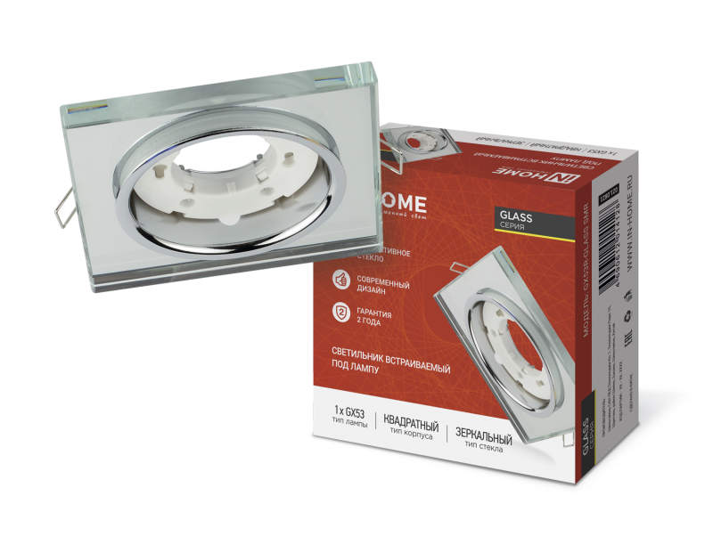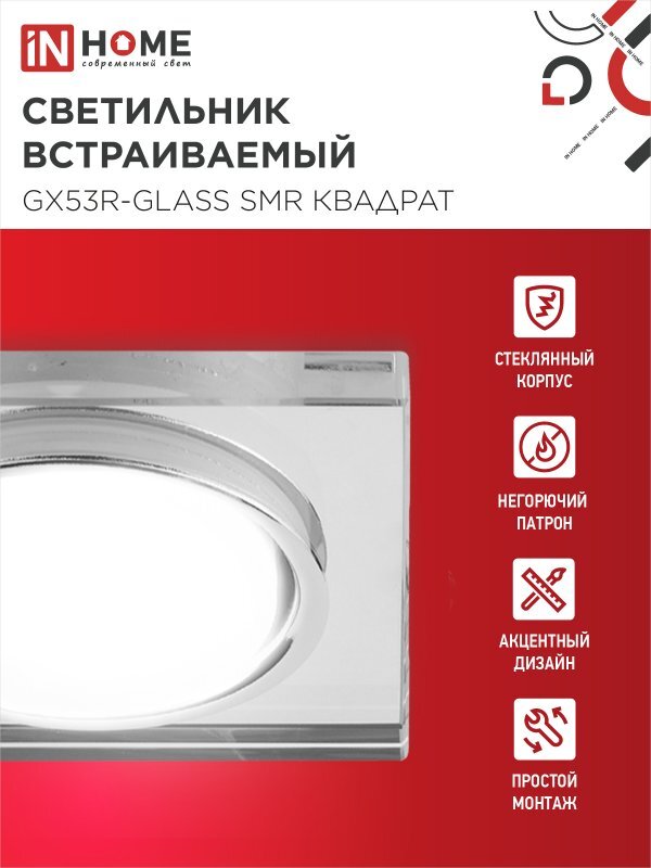 Светильник точечный GX53R-glass SMR GX53 IP20 230В квадрат встраив. зеркальн. IN HOME 4690612014128