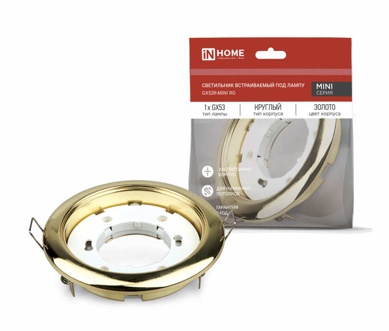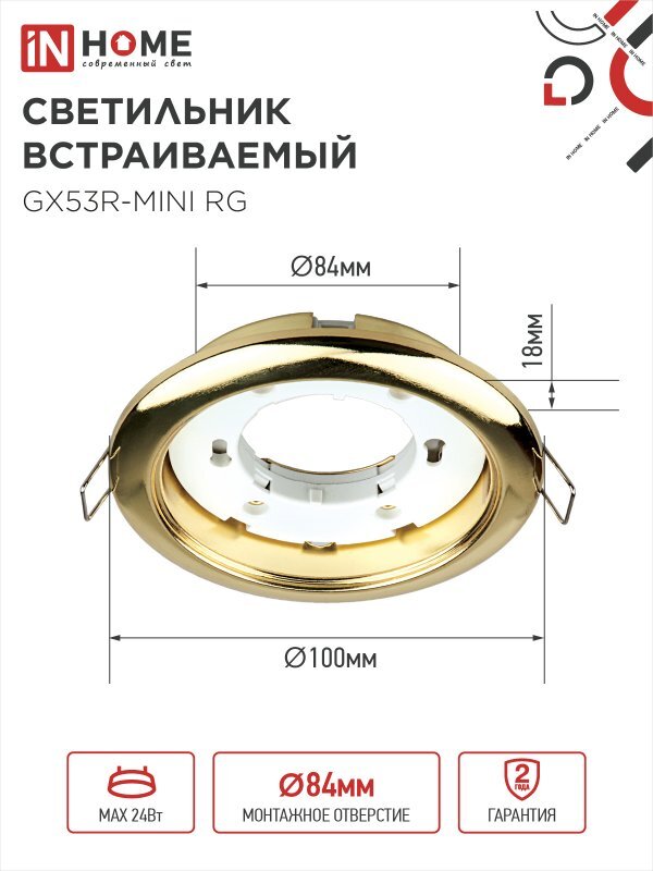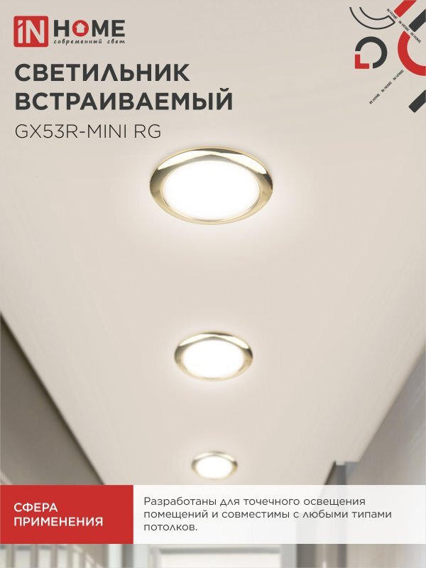 Светильник точечный GX53R-mini RG GX53 IP40 230В встраив. ультратонкий метал. зол. IN HOME 4690612008462