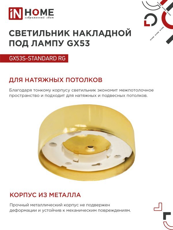 Светильник точечный GX53S-standard GX53 230В накладной метал. зол. IN HOME 4690612012216