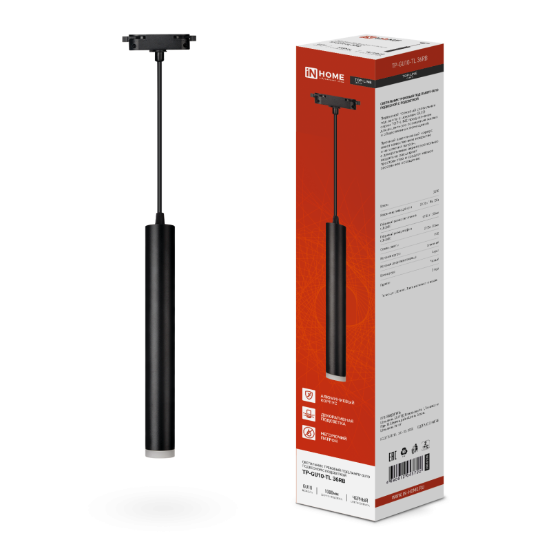 Светильник трековый TOP-LINE TP-GU10-TL 36RB GU10 подвесной с подсветкой под лампу черн. IN HOME 4690612043722