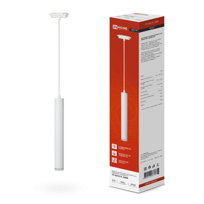 Светильник трековый TOP-LINE TP-GU10-TL 36RW GU10 подвесной с подсветкой под лампу бел. IN HOME 4690612043715