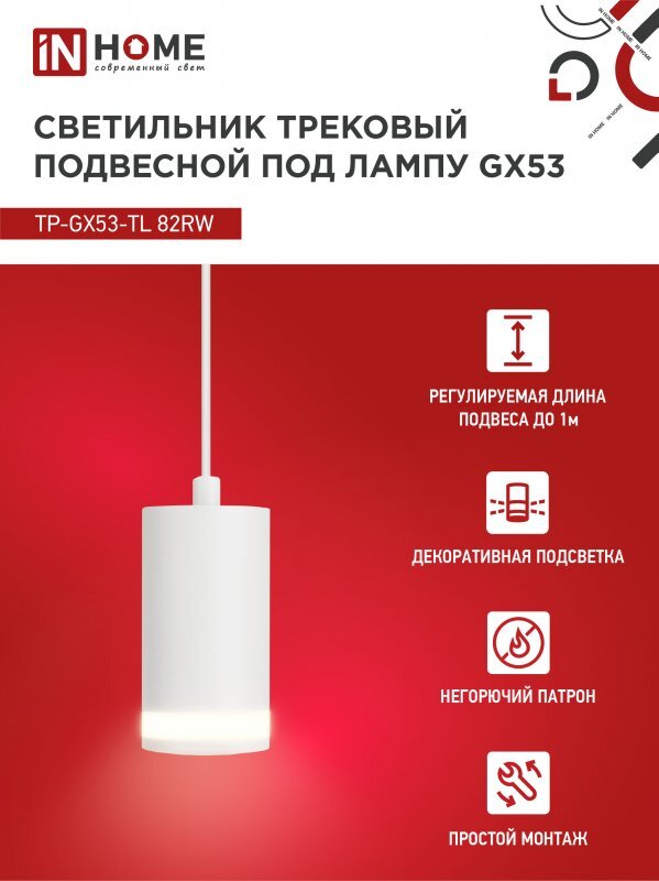 Светильник трековый TOP-LINE TP-GX53-TL 82RW GX53 подвесной с подсветкой под лампу бел. IN HOME 4690612043814