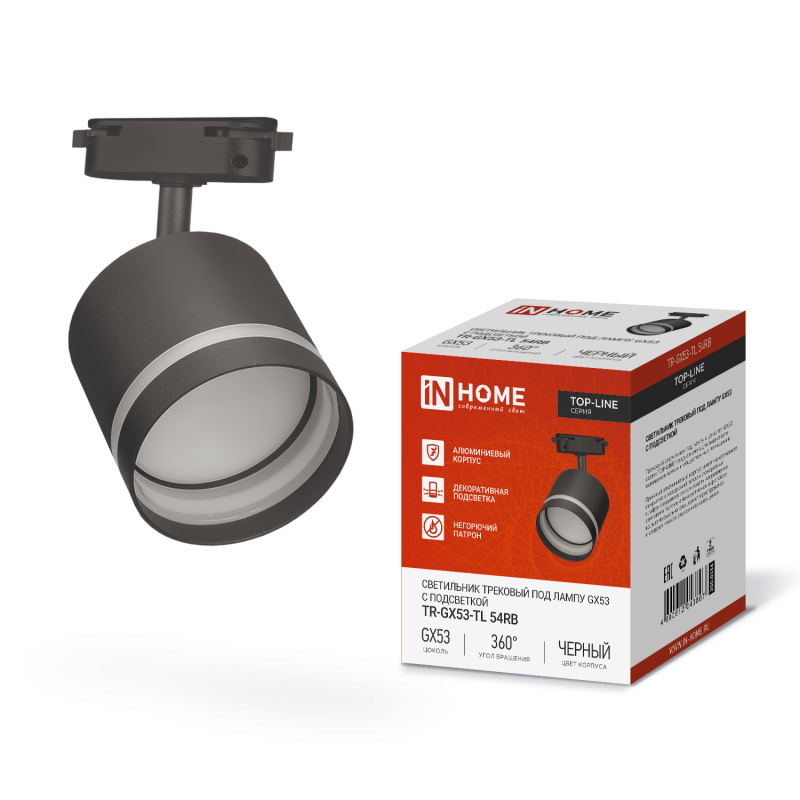 Светильник трековый TOP-LINE TR-GX53-TL 54RB GX53 с подсветкой под лампу черн. IN HOME 4690612043807