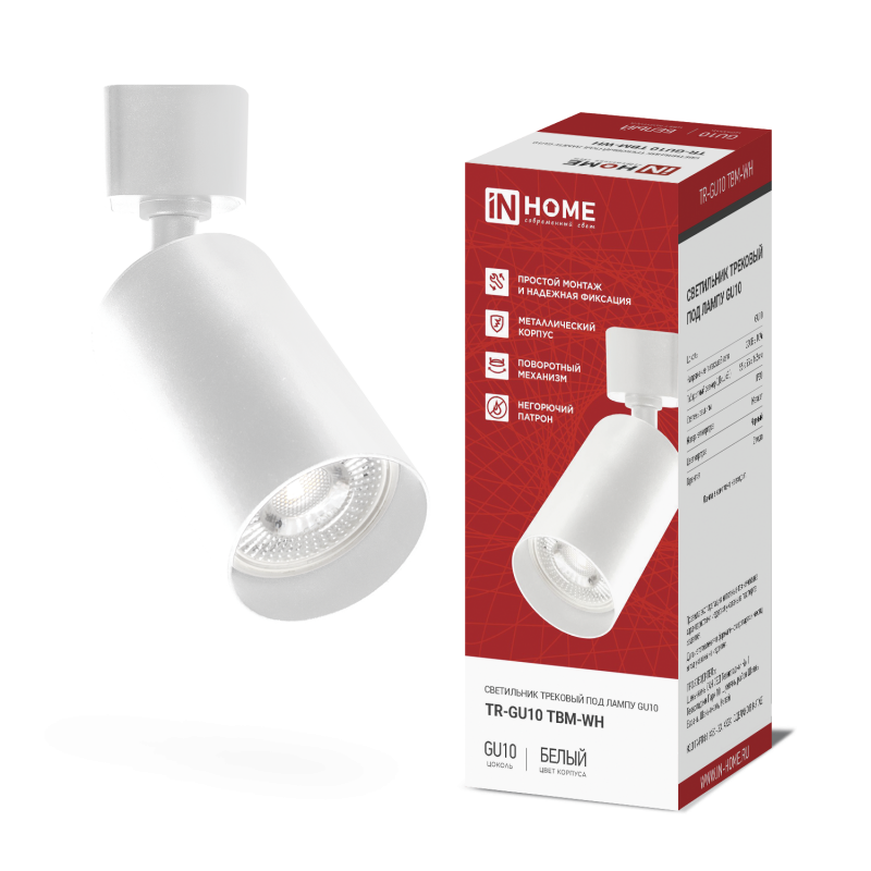 Светильник трековый TR-GU10 TBM-WH под GU10 бел. IN HOME 4690612059440