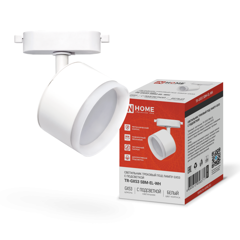 Светильник трековый TR-GX53 SBM-EL-WH с подсветкой бел. IN HOME 4690612056371