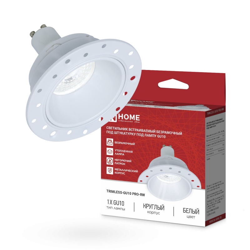 Светильник TRIMLESS-GU10 PRO-RW встраив. под лампу GU10 безрамочн. под штукатурку бел. IN HOME 4690612058153