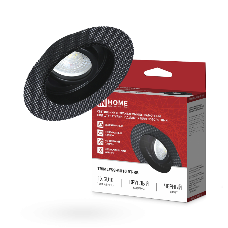 Светильник TRIMLESS-GU10 RT-RB встраив. под лампу GU10 поворотн. безрамочн. под штукатурку черн. IN HOME 4690612058177