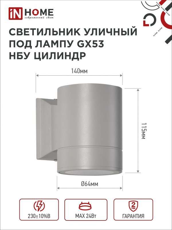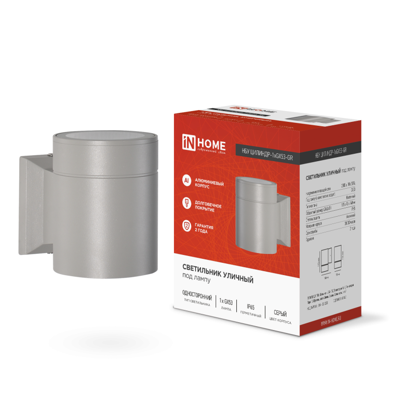 Светильник ЦИЛИНДР-1А-GX53 1GR GX53 IP65 230В уличный односторон. алюм. сер. IN HOME 4690612039329