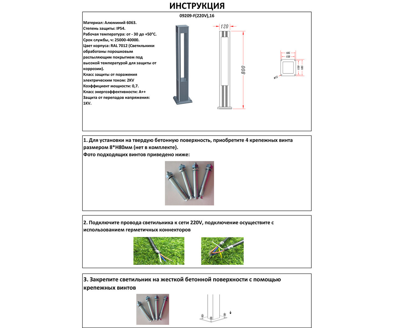 09209-F(220V),16(10) Светильник уличный Аврил серый 220V w12*12 h80 Led 5W (4000K) Декоративная подсветка розовая.