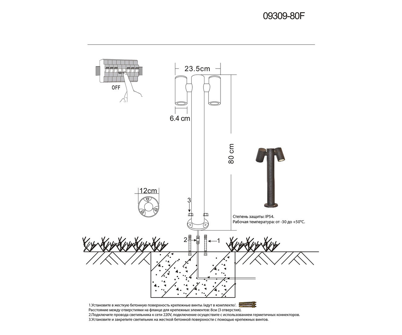 09309-80F,19 Светильник уличный Золли черный w23,2*6,4 основание d12 h80 Led 24W (3000K)