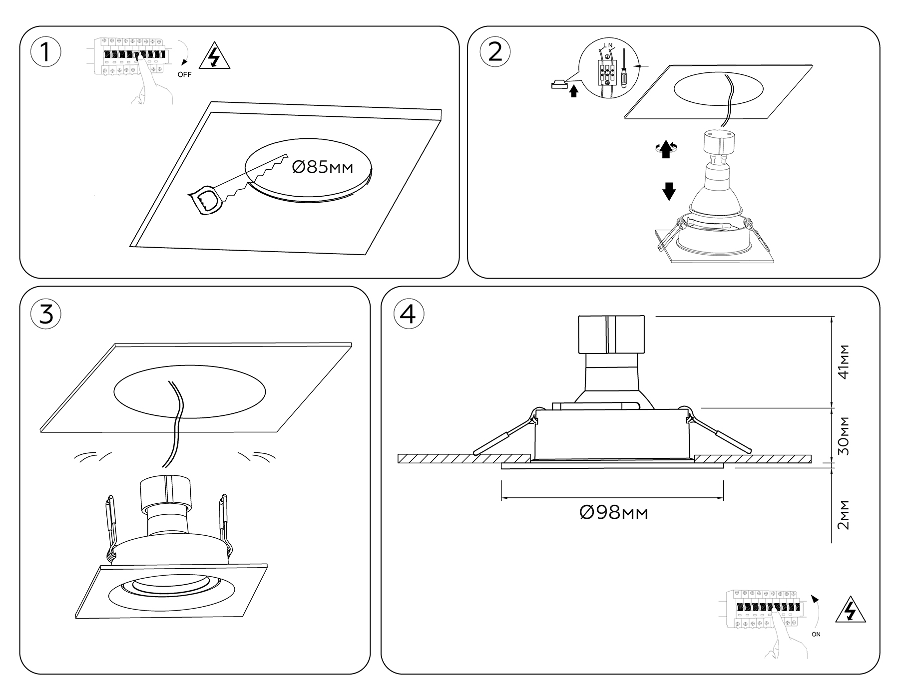Диаметр: 98 Дл: 98 Шир: 98 Высота: 32 Вр. отв: 85 Тип цоколя:GU5.3 Кол ламп:1
