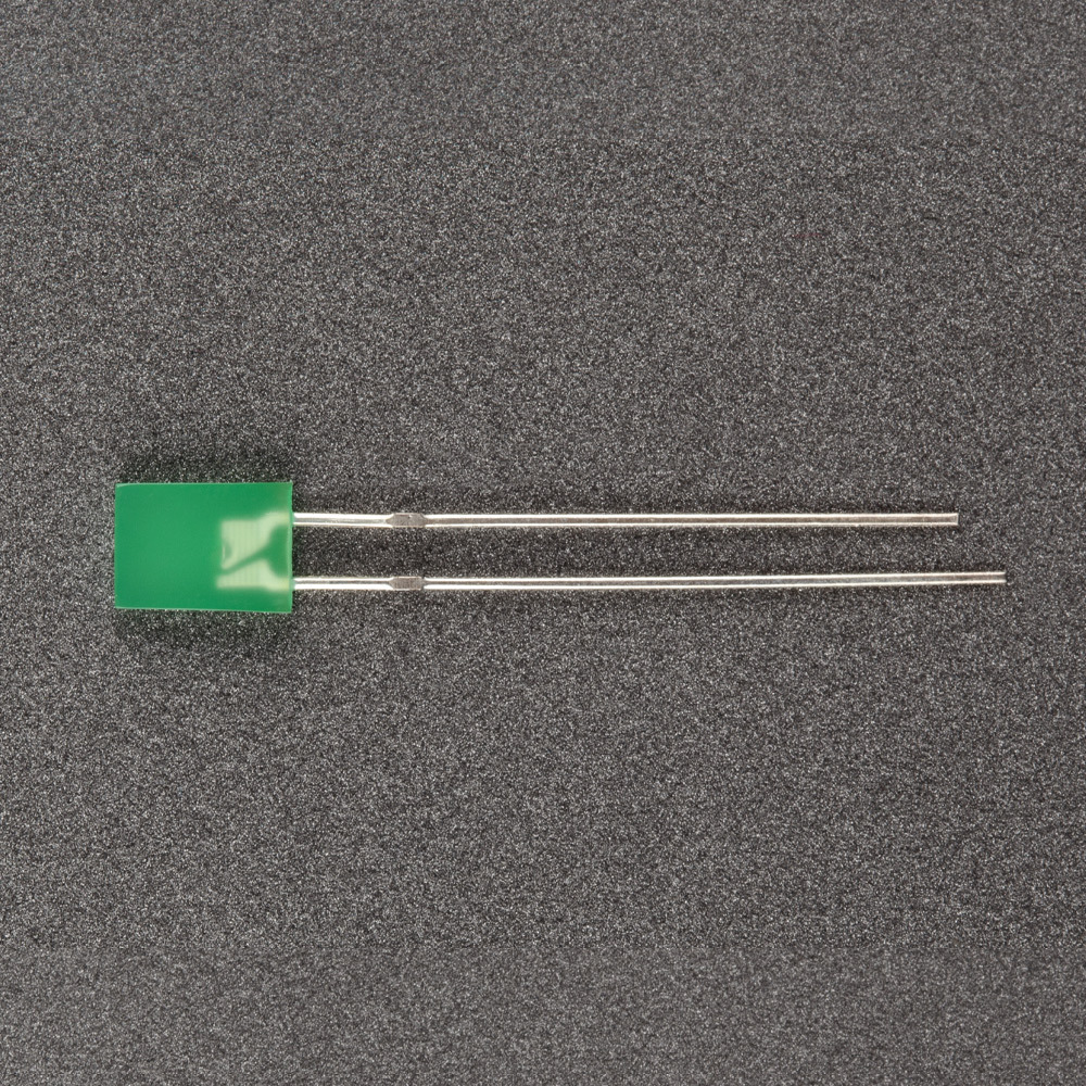 Поставка под заказ от 5000 шт. Выводной прямоугольный светодиод, 2×5×7 мм, зеленая диффузная линза. Цвет свечения зеленый (570 нм). Угол излучения 130°. Сила света Iv=10 мкд при If=20 мА. VF=1.8-2.4 В. Рекомендуемый постоянный рабочий ток <16-17 мА.