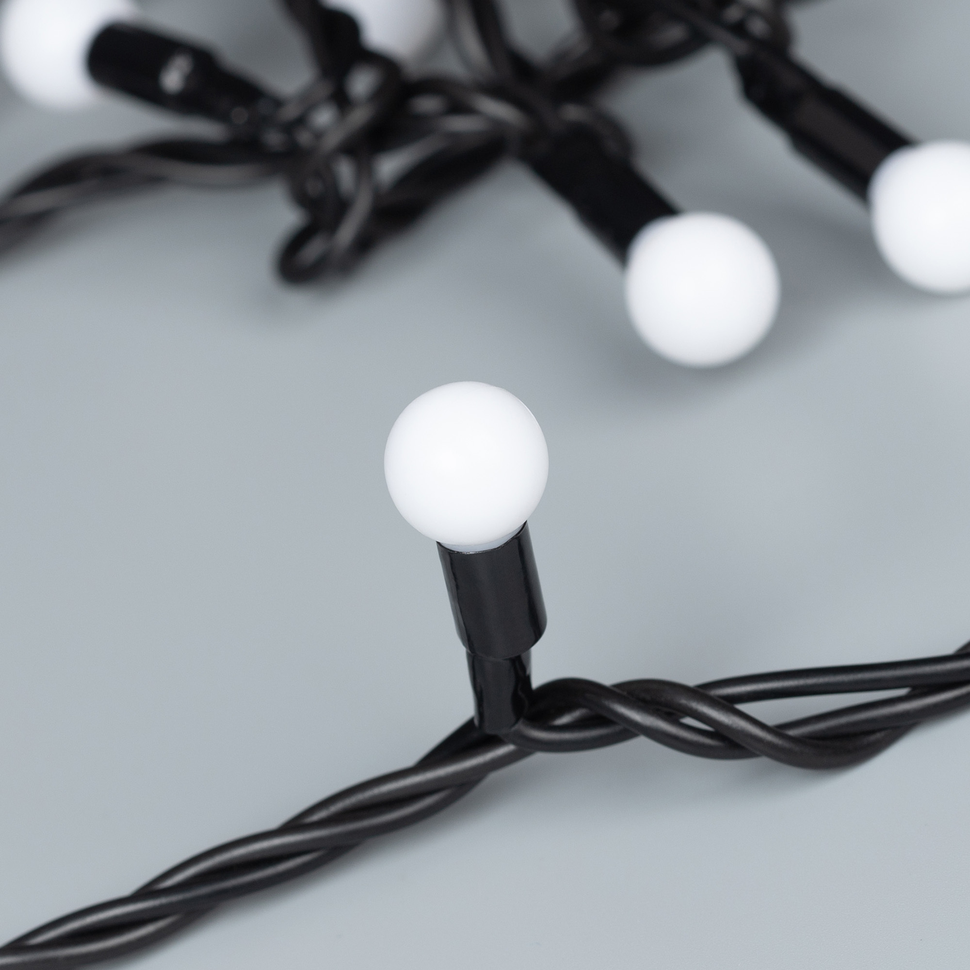 Светодиодные шарики Classic. Размер 10000 мм. Цвет светодиодов RGBY, эффект динамики (автоматическая быстрая смена цвета свечения). 100 шариков со светодиодом внутри размером 13 мм с мягким световым рисунком (выпуклая молочно-белая линза). Провод чёрный, ПВХ. Питание 230 В, Мощность 7 Вт, защита IP65, применение в помещении и на улице под навесом. Аксессуары для подключения приобретаются отдельно.