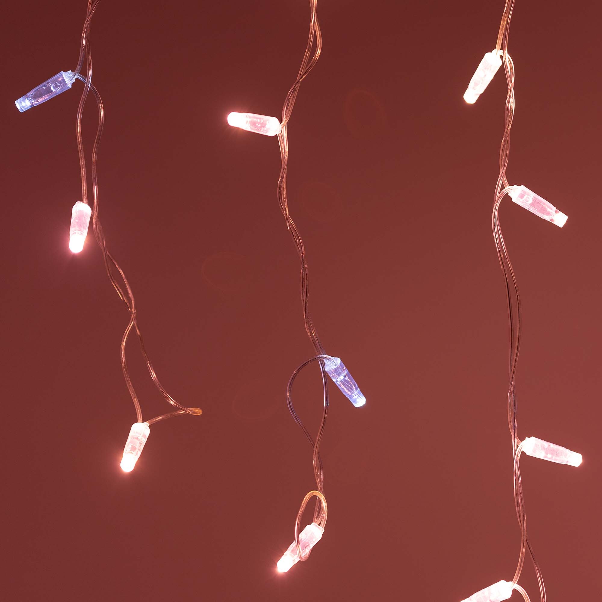 Светодиодная бахрома Classic. Размер 2400 мм (длина 2400 мм, по длине 24 нити высотой 200/600 мм). Количество светодиодов 88 шт размером 7 мм. Основной цвет свечения РОЗОВОЕ ЗОЛОТО, эффект мерцания редких точек (БЕЛЫЙ 6000К) с резким световым рисунком (прозрачная вогнутая линза), соотношение светодиодов: 66 розовых постоянного свечения / 12 белых с мерцанием. Провод прозрачный, ПВХ. Питание 230 В, Мощность 6 Вт, защита IP65, применение на улице под навесом. Аксессуары для подключения приобретаются отдельно.