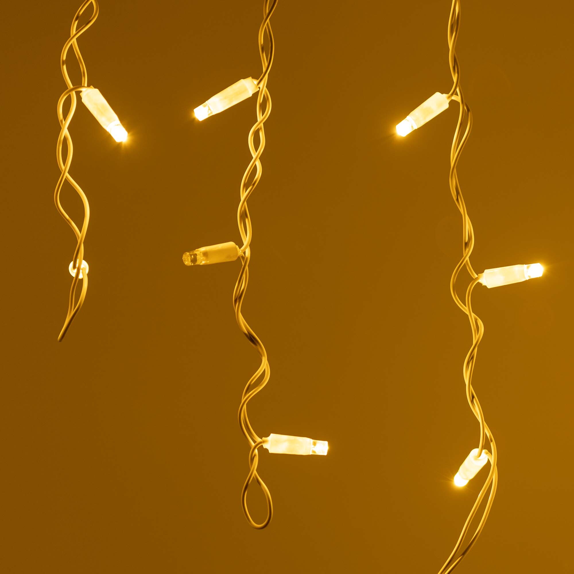 Светодиодная бахрома Classic. Размер 2400 мм (длина 2400 мм, по длине 24 нити высотой 200/600 мм). Количество светодиодов 88 шт размером 7 мм. Основной цвет свечения ТЕПЛЫЙ БЕЛЫЙ (3000 К), эффект мерцания редких точек (ТЕПЛЫЙ БЕЛЫЙ 3000К) с мягким световым рисунком (выпуклая молочно-белая линза), соотношение светодиодов: 66 теплых постоянного свечения / 12 теплых с мерцанием. Эффект частого мерцания. Провод белый, ПВХ. Питание 230 В, Мощность 6 Вт, защита IP65, применение на улице под навесом. Аксессуары для подключения приобретаются отдельно.