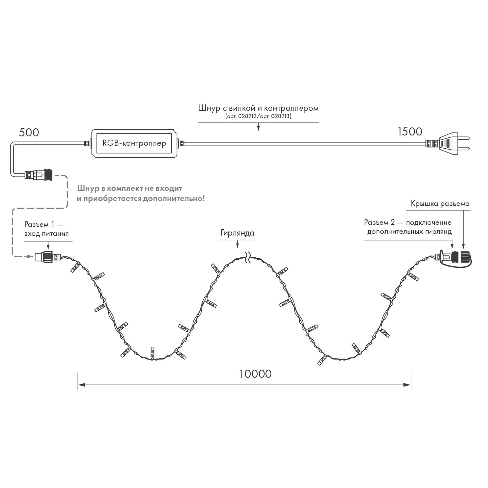 Светодиодная нить Classic. Размер 10000 мм. Цвет свечения RGB, 256 цветов, 100 светодиодов размером 7 мм с динамическими и статическими эффектами свечения с ярким световым рисунком (вогнутая прозрачная линза). Смена эффектов и управление осуществляется с помощью контроллера с пультом. Провод прозрачный, ПВХ. Питание 230 В, Мощность 7 Вт, защита IP65, применение в помещении и на улице под навесом. Аксессуары для подключения и управления приобретаются отдельно.