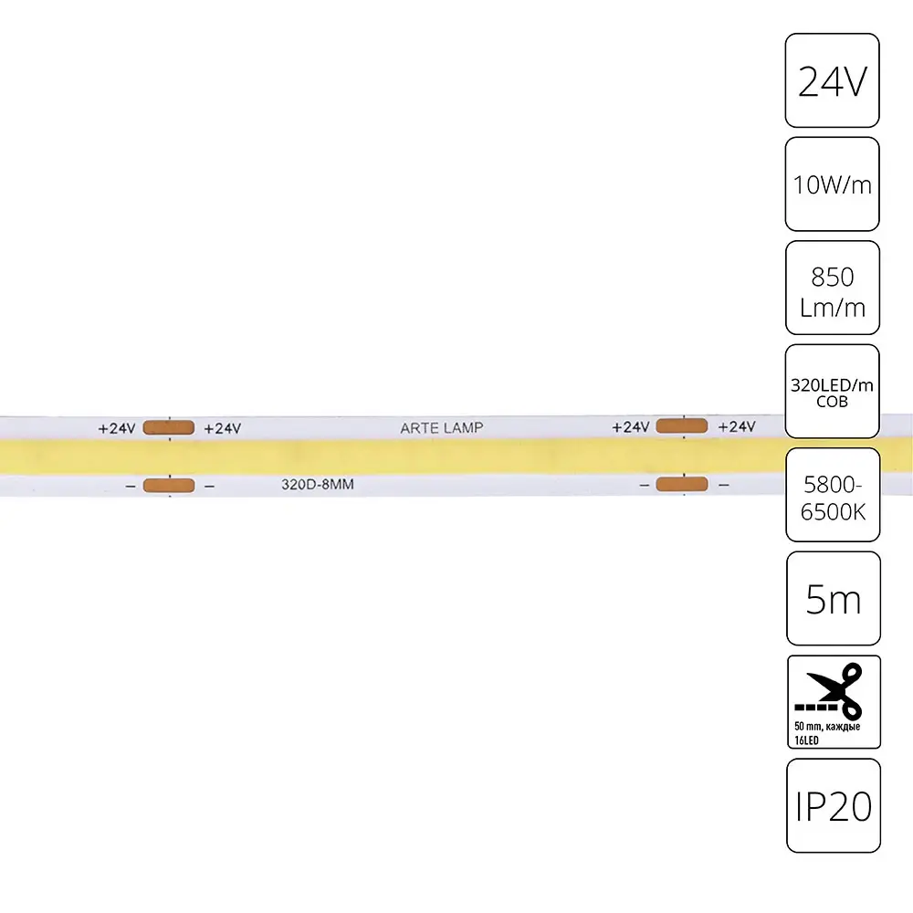 Светодиодная лента 24V 10W/m 6000К 5м Arte Lamp LANE A2432008-03-6K, LED