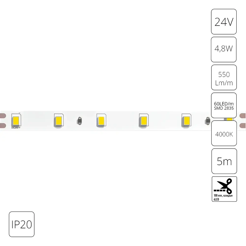Светодиодная лента 24V 4,8W/m 4000К 5м IP20 Arte Lamp TAPE A2406008-02-4K, LED