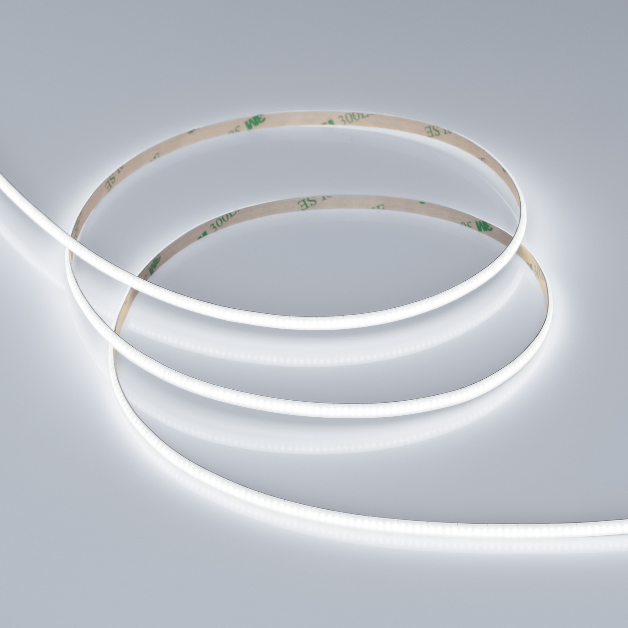 Светодиодная узкая лента сплошного свечения COB серии X504. Светодиоды CSP, 504 шт/м, белая плата шириной 5 мм, скотч 3M. Цвет БЕЛЫЙ 6000K, индекс цветопередачи CRI>90, угол 150°. Питание 12 В, мощность 6.5 Вт/м (32.5 Вт на 5 м). Размеры 5000х5х1.6 мм. Мин. отрезок 7.94 мм. Цена за 1 м. Рекомендуется установка на профиль.