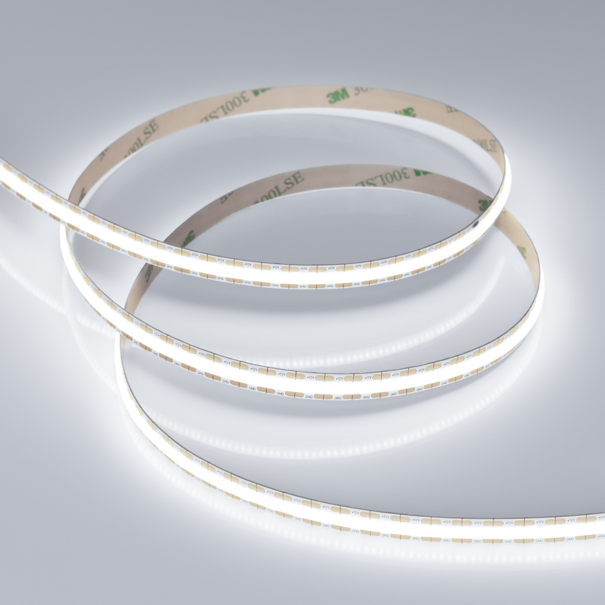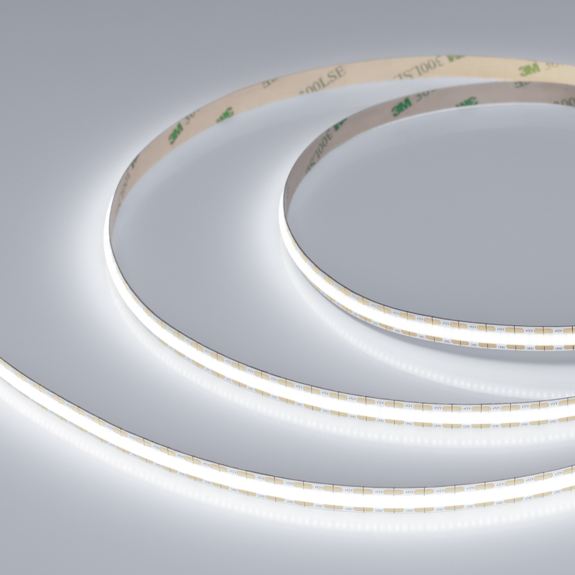 Светодиодная лента сплошного свечения COB серии X528. Светодиоды CSP, 528 шт/м, белая плата шириной 8 мм, скотч 3M. Цвет БЕЛЫЙ 6000K, индекс цветопередачи CRI>90, угол 170°. Питание 12 В, мощность 11 Вт/м (5 Вт на 5 м). Размеры 5000х8х1.6 мм. Мин. отрезок 7.58 мм. Цена за 1 м. Обязательна установка на профиль.