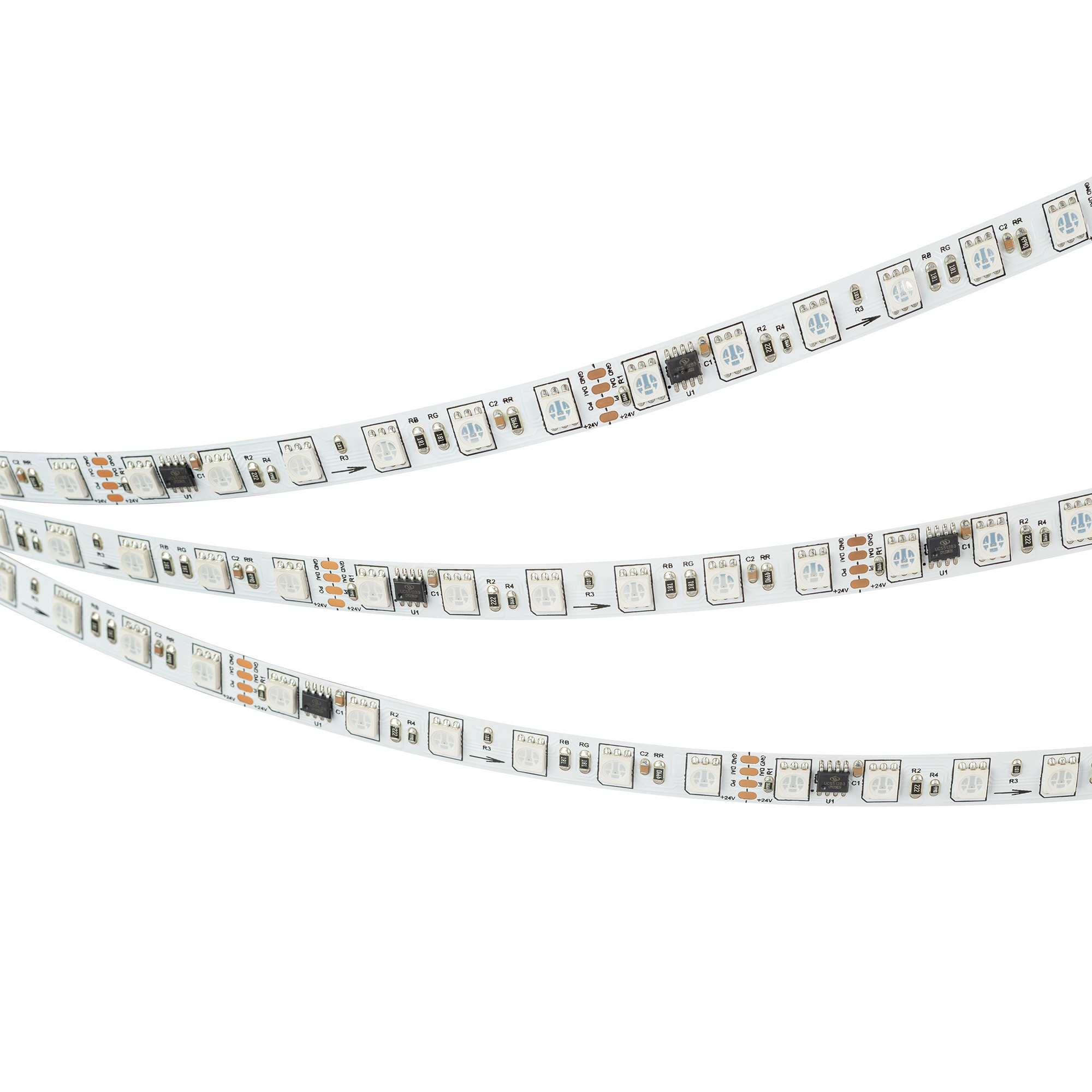 Светодиодная лента DMX серии B72 с микросхемой UCS512. Светодиоды SMD 5060, 72шт/м, 12 pixels на 1 м (60 pixels на 5 м), 1 pixel = 6 светодиодов, белая плата шириной 10 мм, скотч 3М. Цвет RGB, угол 120°. Питание 24 В, мощность 16 Вт/м (80 Вт на 5 м). Размеры 5000x10x2 мм. Мин.отрезок 83.33 мм, 6 светодиодов. Цена за 1м.