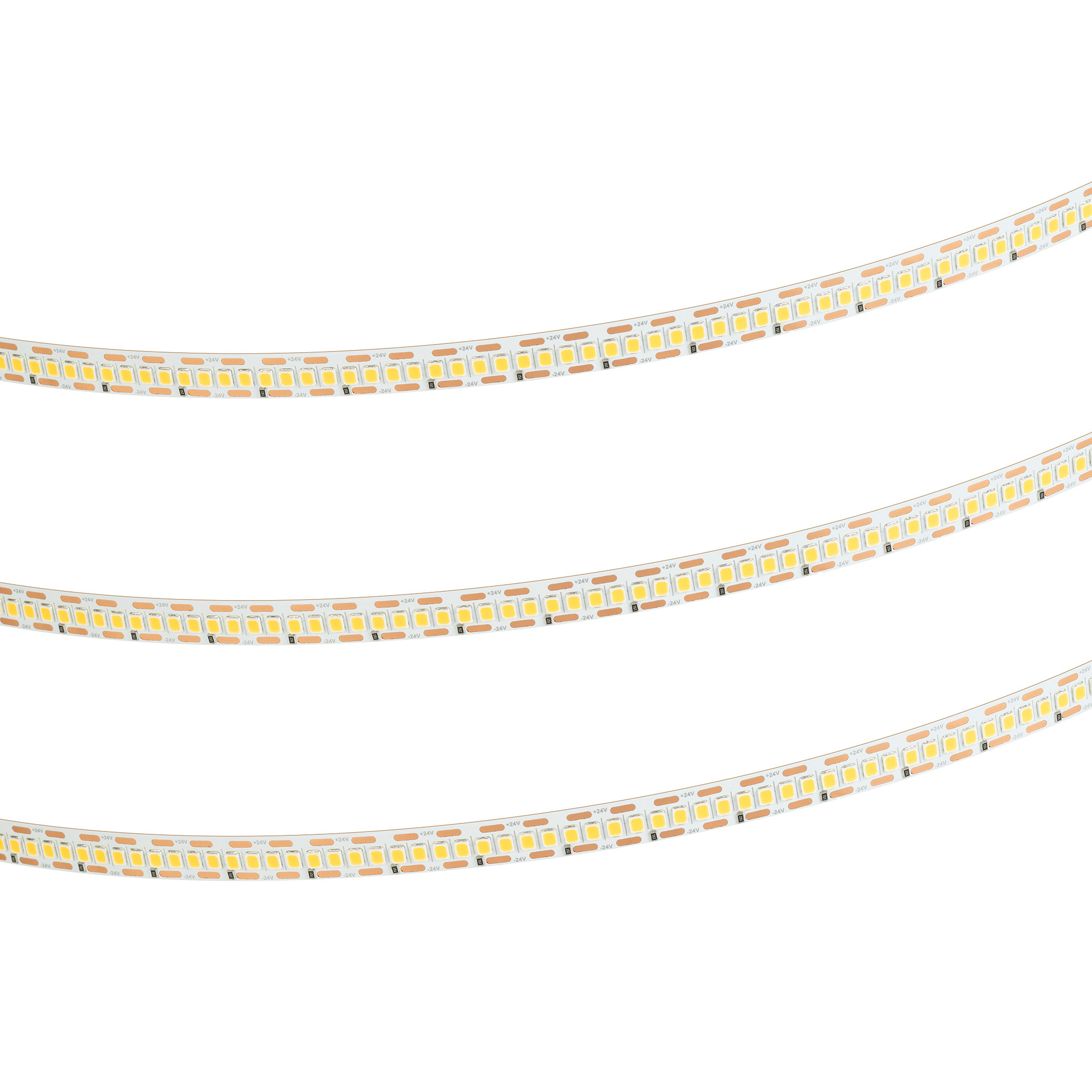 Светодиодная лента FC серии A240 с малым шагом резки. Светодиоды SMD 2835, 240 шт/м, белая плата, ширина 10 мм, скотч 3M. Цвет ТЕПЛЫЙ 3000K, индекс цветопередачи CRI>90, угол 120°. Питание 24 В, мощность 24 Вт/м (120 Вт на 5 м). Размеры 5000x10x1.3 мм. Мин. отрезок 4.16 мм, 1 светодиод. Цена за 1 м. Обязательна установка на профиль.