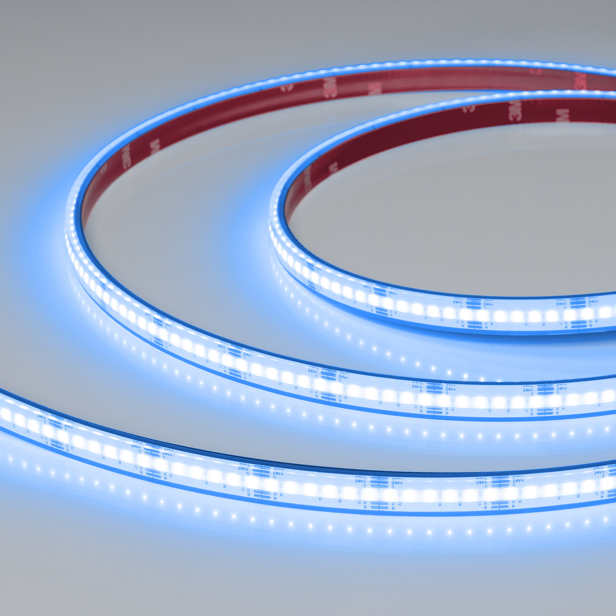 Светодиодная герметичная лента сплошной засветки без видимых светодиодов серии CSP X540, IP68 (PFS - полная силиконовая экструзия). Светодиоды CSP, 540 шт/м (2700 шт на 5 м), белая плата шириной 10 мм. Цвет RGB, угол 160°. Питание 24 В, мощность 15 Вт/м (75 Вт на 5 м). Размеры 5000x12x5 мм. Мин. отрезок 33.33 мм. Цена за 1 м.