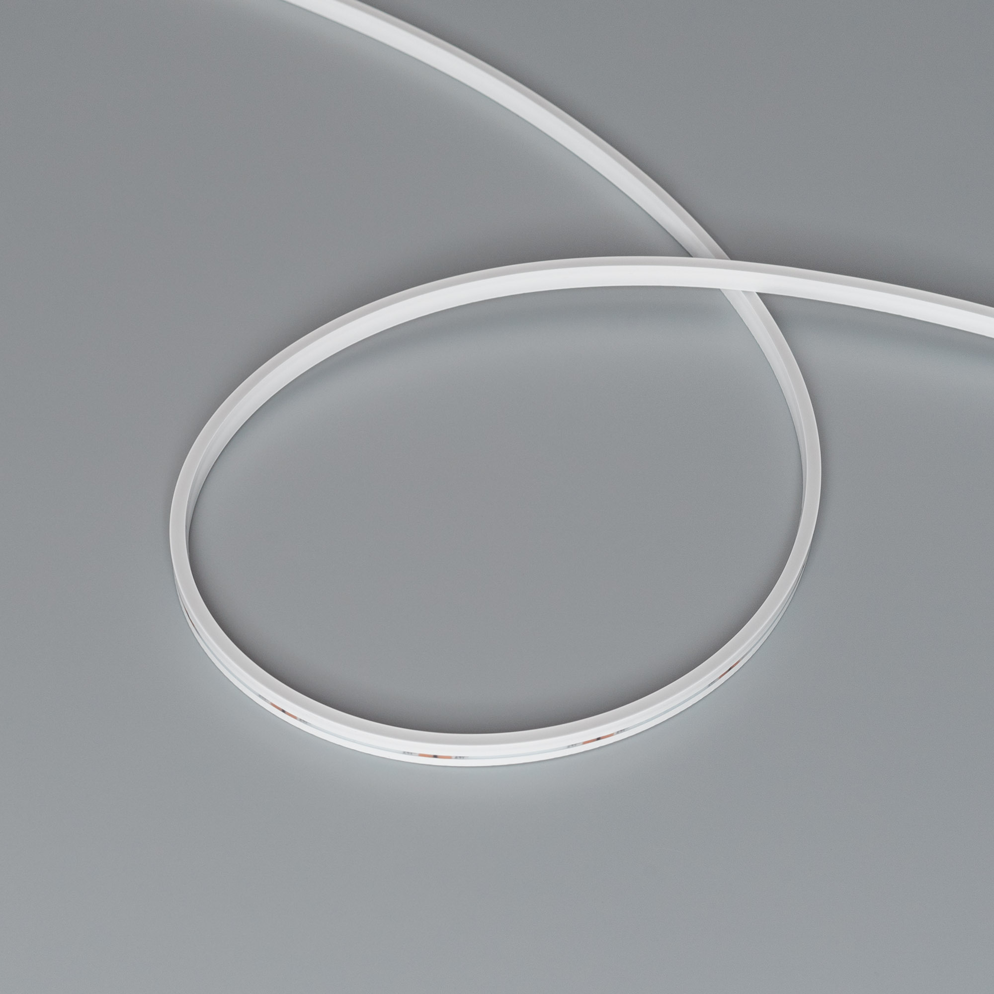 Гибкая герметичная лента (неон серии MOONLIGHT), сечение 3×6 мм. Светодиоды SMD 2216 196 шт/м. Цвет свечения ТЁПЛЫЙ (2300 К), индекс цветопередачи CRI>90, световой поток 170 лм/м, угол излучения 112°. Мощность 7.2 Вт/м, питание 24 В. Класс пылевлагозащиты IP54. Размеры 5000×3×6 мм. Мин. отрезок 35.7 мм. Горизонтальный изгиб SIDE, минимальный радиус изгиба 30 мм. Кабель питания длиной 500 мм, вывод с двух сторон вдоль линии сечения неона. Катушка 5 м. Цена за 1 м. Гарантия 3 года.