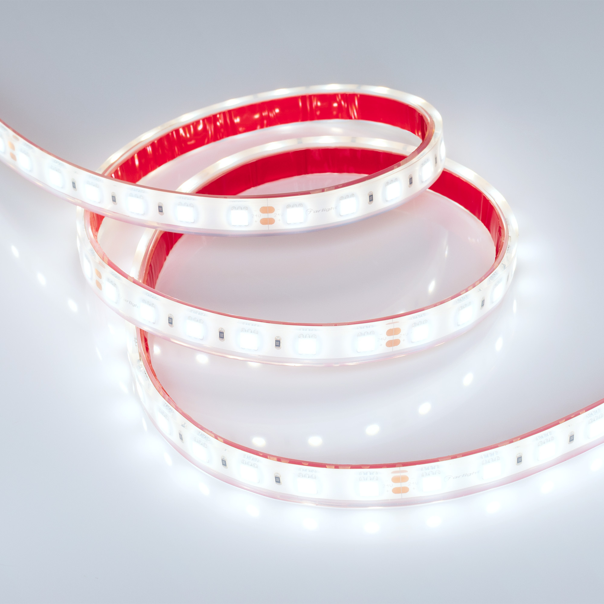 Светодиодная герметичная лента RTW серии B60, IP68 (PFS - полная силиконовая экструзия). Светодиоды 5060, 60 шт/м, белая плата шириной 10 мм, скотч 3M. Цвет ХОЛОДНЫЙ 10000K, индекс цветопередачи CRI>80, угол 120°. Питание 24 В, мощность 14.4 Вт/м (72 Вт на 5 м). Размеры 5000x13x5.5 мм. Мин. отрезок 100 мм, 6 светодиодов. Цена за 1 м.