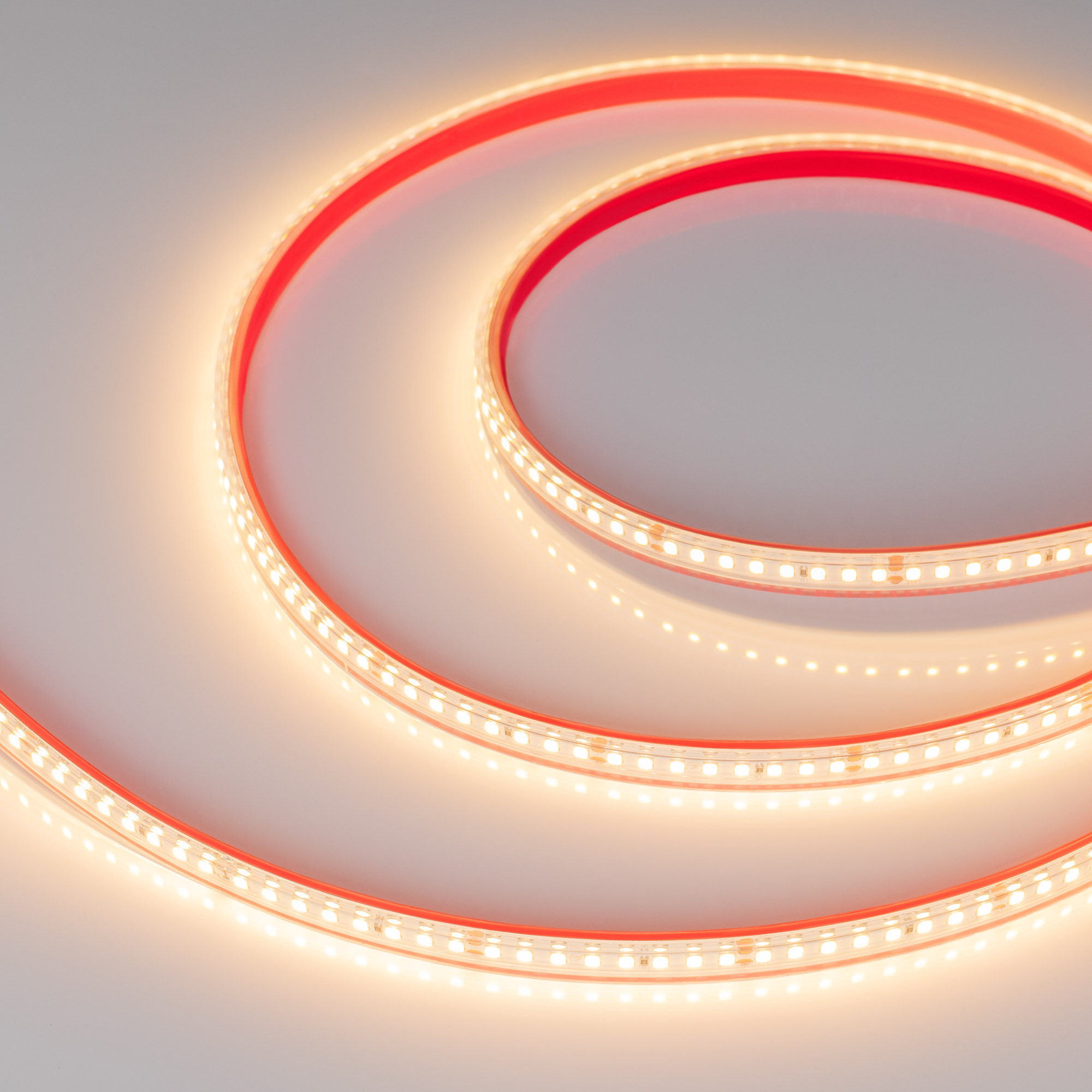 Светодиодная герметичная лента RTW серии A160 (монтажная бобина 50 м), IP67 (PS - силиконовая экструзия). Светодиоды SMD 2835, 160 шт/м, белая плата шириной 8 мм, скотч 3M. Цвет ТЕПЛЫЙ 2700K, индекс цветопередачи CRI>85, угол 120°. Питание 24 В, мощность 12 Вт/м (600 Вт на 50 м). Размеры 50000x10x5 мм. Мин. отрезок 50 мм, 8 светодиодов. Цена за 1 м. Разрезать перед подключением. Макс. длина подключения 5 м.