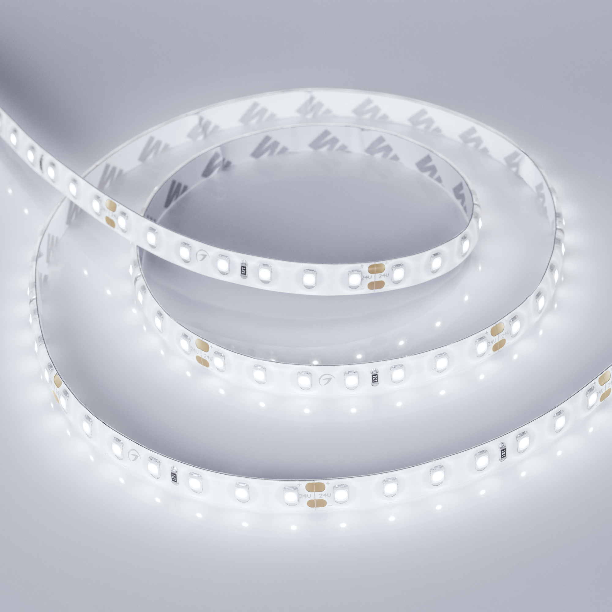 Светодиодная герметичная лента RTW серии A98, IP65 (SE - силиконовый верхний слой). Светодиоды 2835, 98 шт/м, белая плата шириной 8 мм, скотч 3M. Цвет БЕЛЫЙ 6000K, индекс цветопередачи CRI>85, угол 120°. Питание 24 В, мощность 10 Вт/м (50 Вт на 5 м). Размеры 5000x8x2.2 мм. Мин. отрезок 71.43 мм, 7 светодиодов. Цена за 1 м.
