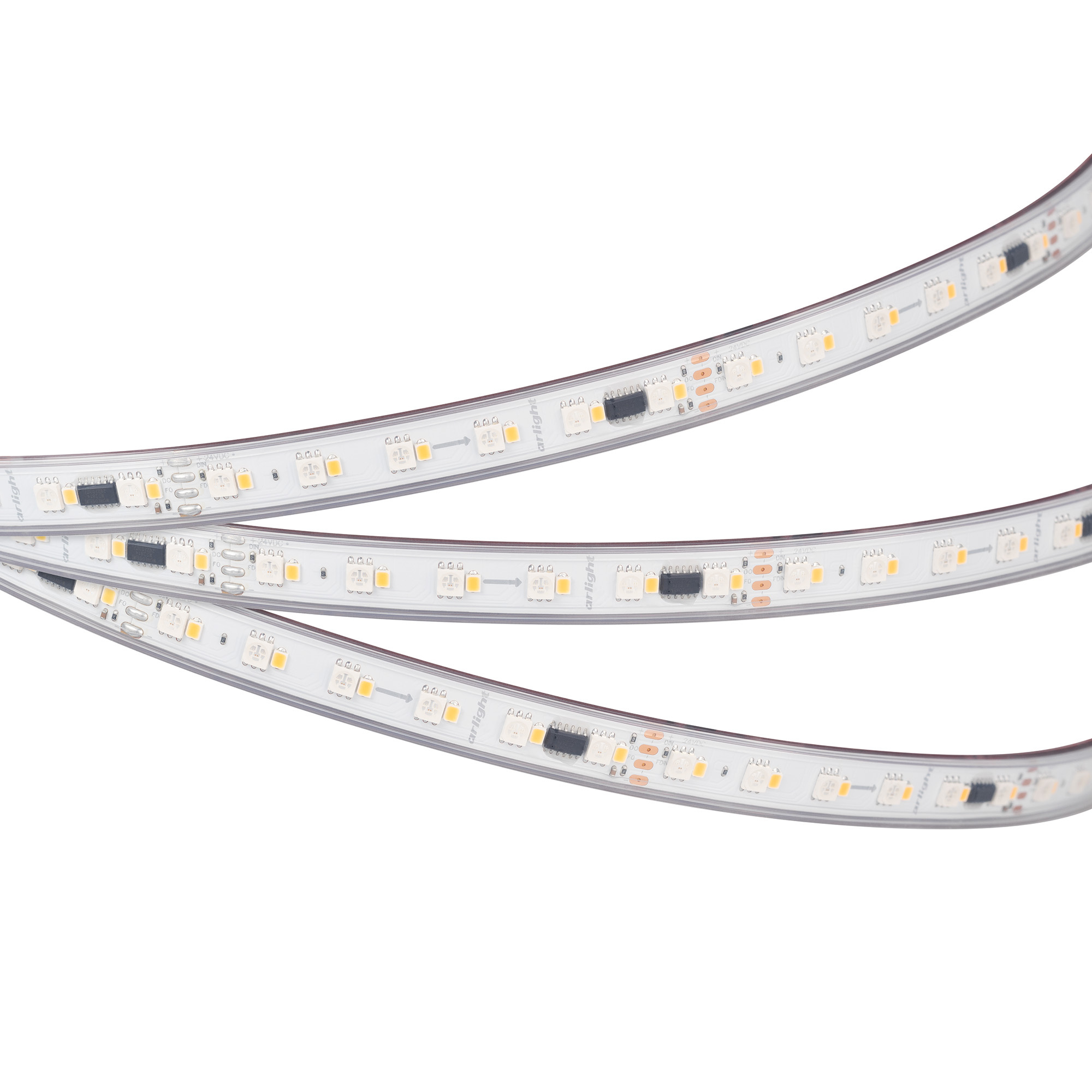 Светодиодная герметичная лента SPI серии BA120 с микросхемой WS2814, IP66 (P - силиконовая трубка). Светодиоды SMD 5060 (60 шт/м) + SMD 2835 (60 шт/м), 10 pixels на 1 м (50 pixels на 5 м), 1 pixel = 6 светодиодов RGB + 6 светодиодов White, белая плата шириной 12 мм, скотч 3М. Цвет RGB + БЕЛЫЙ 6000К, индекс цветопередачи CRI>90, угол 120°. Питание 24 В, мощность 16 Вт/м (80 Вт на 5 м). Размеры 5000x14.4x4.5 мм. Мин. отрезок 100 мм, 12 светодиодов. Цена за 1 м.