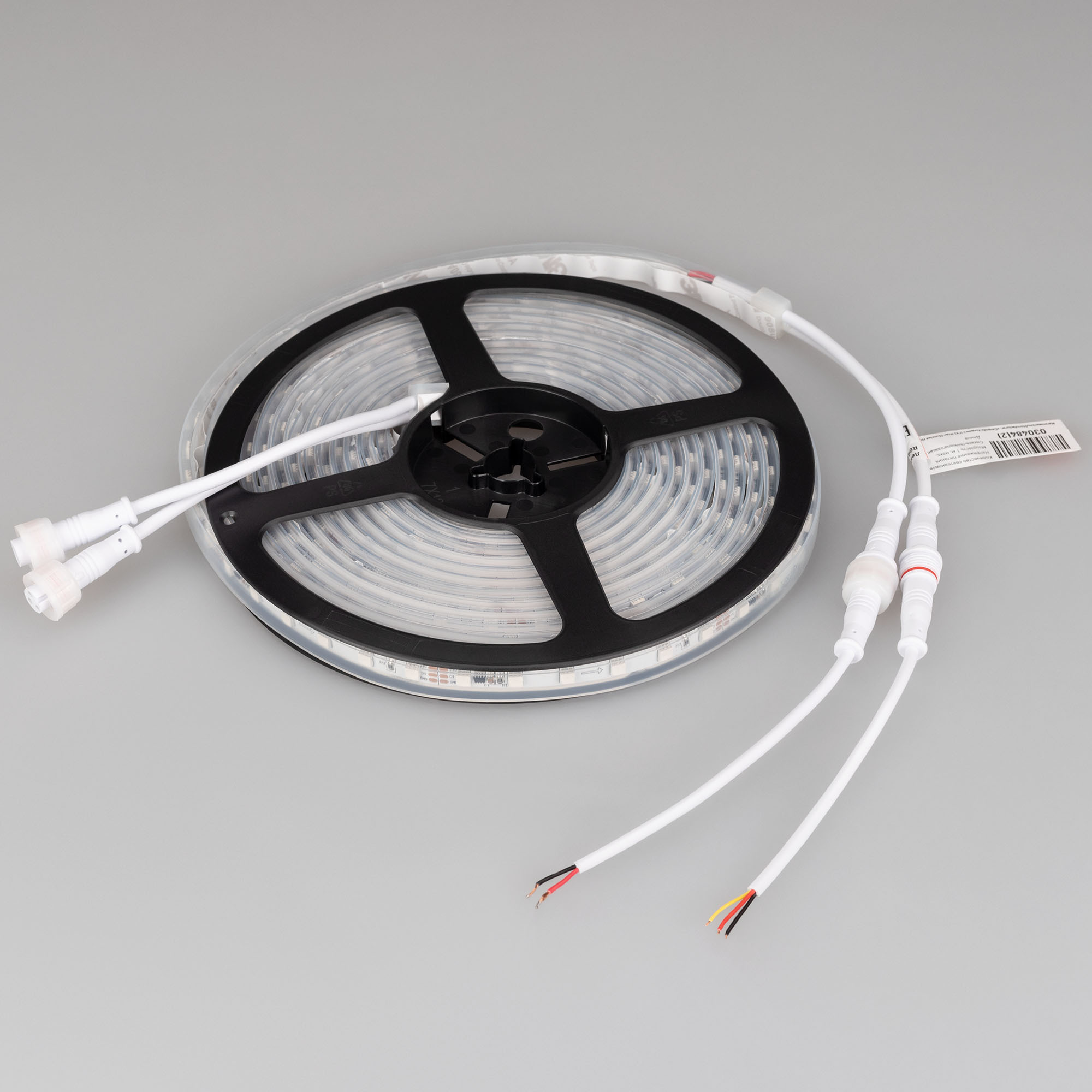 Светодиодная герметичная лента SPI серии F72 с микросхемой 16703(MT1803), IP66 (P - силиконовая трубка). Светодиоды SMD 3535, 72 шт/м, 12 pixels на 1 м (60 pixels на 5 м), 1 pixel = 6 светодиодов, белая плата шириной 7 мм, скотч 3М. Цвет RGB, угол 120°. Питание 24 В, мощность 14.4 Вт/м (72 Вт на 5 м). Размеры 5000x11x4 мм. Мин. отрезок 83.3 мм, 6 светодиодов. Цена за 1 м.