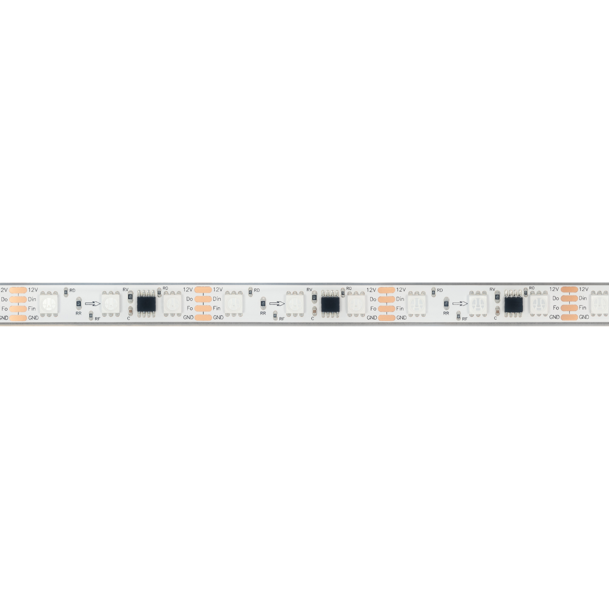 Светодиодная герметичная лента SPI серии B60 с микросхемой MT1808A, IP68 (PFS - полная силиконовая экструзия). Светодиоды SMD 5060, 60 шт/м, 20 pixels на 1 м (100 pixels на 5 м), 1 pixel = 3 светодиода, белая плата шириной 10 мм, скотч 3М. Цвет RGB, угол 120°. Питание 12 В, мощность 12 Вт/м (60 Вт на 5 м). Размеры 5000x12x5 мм. Мин. отрезок 50 мм, 3 светодиода. Цена за 1 м.