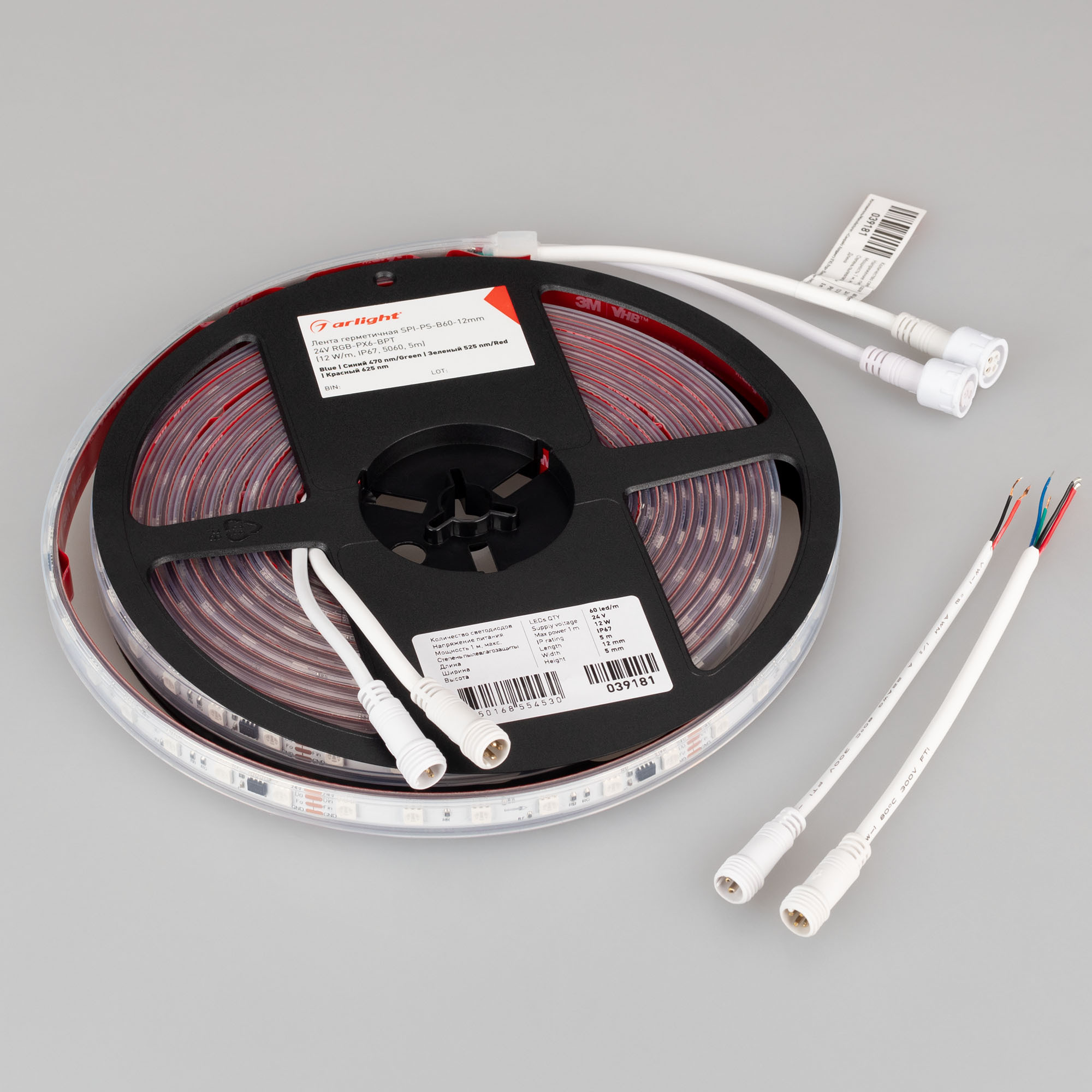 Лента герметичная SPI-PS-B60-12mm 24V RGB-PX6-BPT (12 W/m, IP67, 5060, 5m) (Arlight, бегущий огонь)