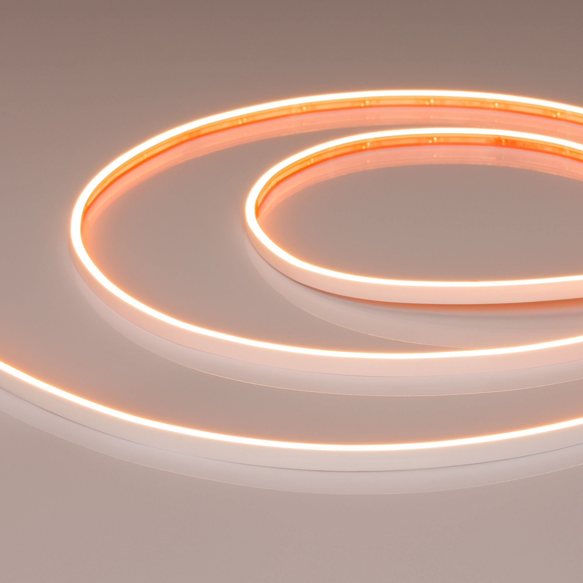 Светодиодная герметичная лента VELA серии M240, IP65 (PSW - матовая силиконовая экструзия). Светодиоды SMD 2020, 240 шт/м, прозрачный скотч TESA. Цвет ТЕПЛЫЙ 2400K, индекс цветопередачи CRI>90, угол 120°. Питание 24 В, мощность 5 Вт/м (25 Вт на 5 м). Размеры 5000x2.5x6 мм. Мин. отрезок 25 мм, 6 светодиодов. Цена за 1 м. Рекомендуется установка на алюминиевый профиль.