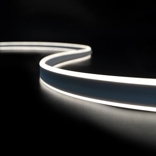 Гибкая герметичная лента (неон серии WAVE), сечение 16×15 мм. Светодиоды SMD2835 120 шт/м. Цвет свечения ХОЛОДНЫЙ БЕЛЫЙ (6000 К), индекс цветопередачи CRI>90, световой поток 636 лм/м, угол излучения 292°. Мощность 15 Вт/м, питание 24 В. Класс пылевлагозащиты IP67. Размеры 5000×16×15 мм. Мин. отрезок 50 мм. Горизонтальный изгиб SIDE, свечение в две стороны, минимальный радиус изгиба 100 мм. Вывод кабеля с одной стороны перпендикулярно линии сечения неона. Катушка 5 м. Цена за 1 м. Гарантия 5 лет.