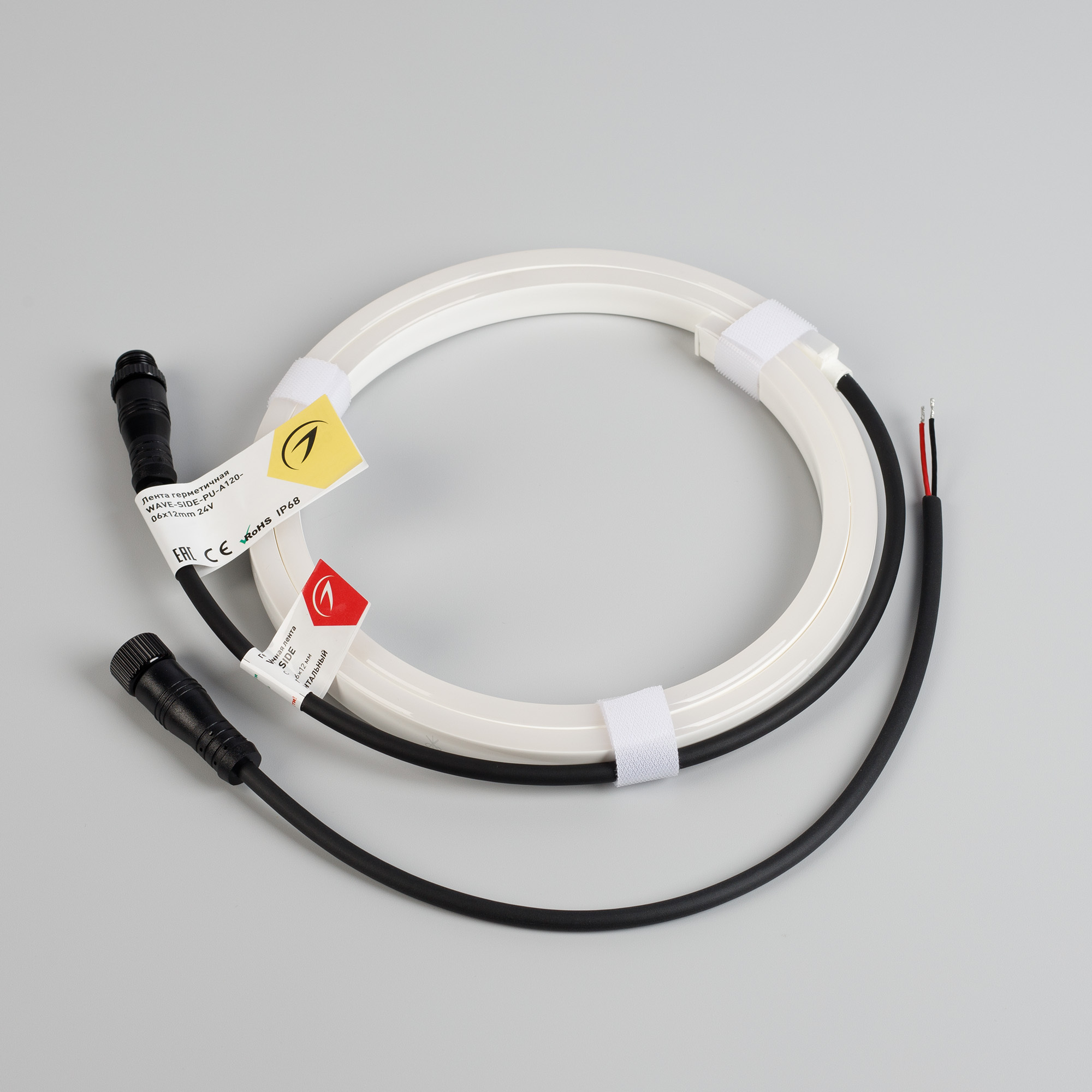 Гибкая герметичная лента (неон серии WAVE), сечение 06×12 мм. Светодиоды SMD2835 120 шт/м. Цвет свечения ТЕПЛЫЙ БЕЛЫЙ (3000 K), индекс цветопередачи CRI>90, световой поток 398 лм/м, угол излучения 125°. Мощность 8 Вт/м, питание 24 В. Оболочка из Полиуретана (PU). Класс пылевлагозащиты IP68. Размеры 1000×06×12 мм. Не подлежит резке. Горизонтальный изгиб SIDE, минимальный радиус изгиба 30 мм. Катушка 1 м. Цена за 1 м. Гарантия 3 года.