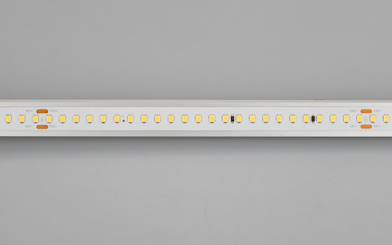 Стабилизированная лента LUX, подключение 50м в одну линию, светодиоды smd 2835, 144шт/м (7200шт на 50м), белая плата 12мм, скотч 3М. Цвет ДНЕВНОЙ 3800-4200K. Питание 48V, мощность 5.8 Вт/м (290 Вт на 50м), угол 120°, цветопередача CRI>85. Размеры 50000х12x1.6мм. Мин.отрезок 166.67мм, 24 шт светодиодов. Пакет 50м. Цена за 1м.