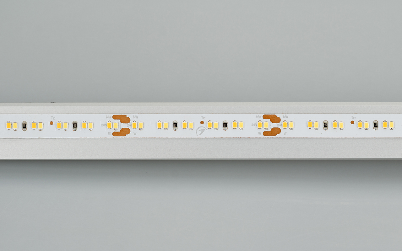 Биполярная лента LUX с изменяемой цв.температурой, светодиоды smd 2216, 240шт/м (1200шт на 5м), белая плата 8мм, скотч 3М. Два цвета БЕЛЫЙ 6000K + ТЁПЛЫЙ 2700K. Угол 120°, цветопередача CRI>90. Питание 24V, мощность 9.6 Вт/м (48 Вт на 5м). Размеры 5000х8х1.2мм. Мин.отрезок 50мм, 12 светодиодов. Цена за 1м.